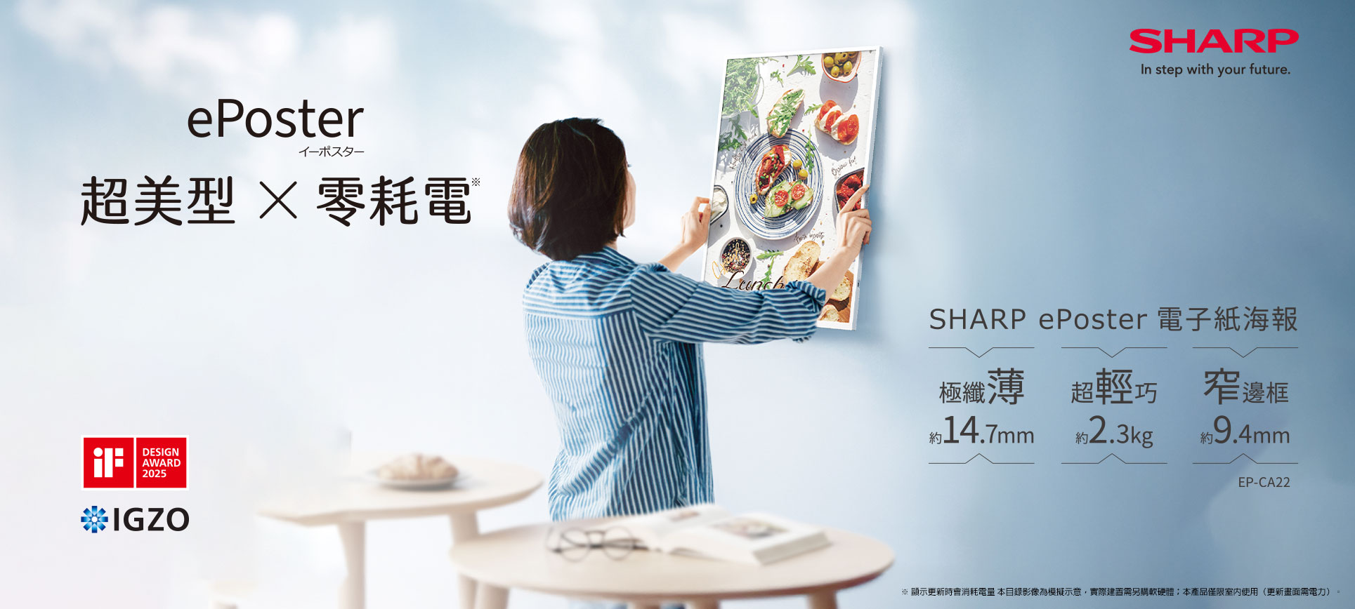 ePoster 是一種低耗電又可保持顯示畫面的電子紙顯示器。