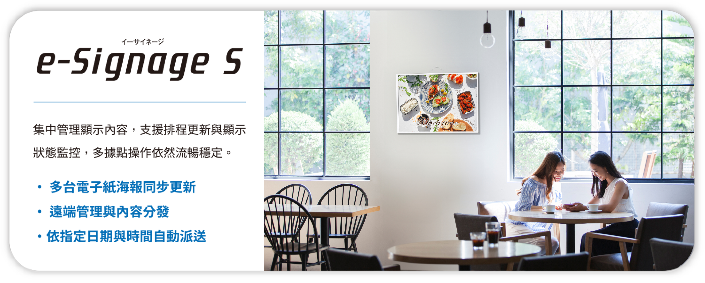 搭配專屬 e-Signage S 軟體(選購),可輕鬆同步管理多台裝置。